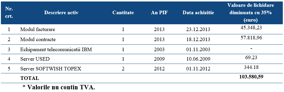24.10.2024: V.F. INSOLVENŢĂ SPRL, in calitate de lichidator judiciar al societatii debitoare NECC TELECOM ROMANIA S.A. – „in faliment, in bankruptcy, en faillite”, organizeaza licitație publica cu strigare in data de 31.10.2024, ora 11.00 pentru valorificarea in bloc a activelor imobilizate (mijloace fixe) apartinand societatii debitoare, situate la sediul Centrului de afaceri Lumina Verde din Municipiul Ploiesti, Str. Elipsei, Nr. 1, judetul Prahova, descrise in anexa la prezenta. Licitatia se va desfasura în sistem electronic, prin intermediul platformei UNPIR de licitații online care poate fi accesată la adresa: https://www.licitatii-unpir.ro/office/it/mijloace-fixe-module-si-servere/, pretul de pornire fiind de 103.580,59 Euro la care se adauga TVA conform prevederilor legale incidente la data transferului dreptului de proprietate. In situatia in care activele nu se valorifica la prima licitatie publica cu strigare, se vor organiza in continuare alte 3 (trei) sedinte de licitatii publice, in aceleasi conditii de pret si la aceeasi ora, avand ca pret de pornire valoarea de lichidare stabilita prin raportul de evaluare, diminuata cu 35%, in urmatoarele date: 07.11.2024, 14.11.2024 si 21.11.2024. Informatii suplimentare privind descrierea activului, conditiile de participare si organizarea licitatiilor puteti solicita prin intermediul platformei.