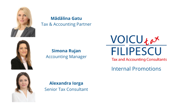 As a result of the individual performances obtained in the last years, Voicu & Filipescu Tax Advisers announces internal promotions to the positions of Tax & Accounting Partner, Accounting Manager and Senior Tax Consultant.