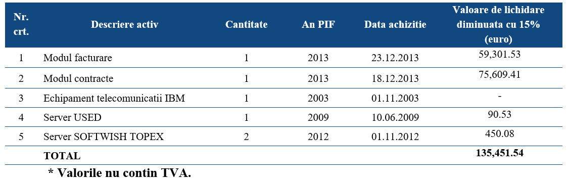 28.03.2024: V.F. INSOLVENŢĂ SPRL, in calitate de lichidator judiciar al societatii debitoare NECC TELECOM ROMANIA S.A. – „in faliment, in bankruptcy, en faillite”, organizeaza licitație publica cu strigare in data de 04.04.2024, ora 11.00 pentru valorificarea in bloc a activelor imobilizate (mijloace fixe) apartinand societatii debitoare, situate la sediul Centrului de afaceri Lumina Verde din Municipiul Ploiesti, Str. Elipsei, Nr. 1, judetul Prahova, descrise in anexa la prezenta. Licitatia se va desfasura în sistem electronic, prin intermediul platformei UNPIR de licitații online care poate fi accesată la adresa: https://www.licitatii-unpir.ro/office/it/mijloace-fixe-module-si-servere/, pretul de pornire fiind de 135.451,54 Euro la care se adauga TVA conform prevederilor legale incidente la data transferului dreptului de proprietate. In situatia in care activele nu se valorifica la prima licitatie publica cu strigare, se vor organiza in continuare alte 3 (trei) sedinte de licitatii publice, in aceleasi conditii de pret si la aceeasi ora, avand ca pret de pornire valoarea de lichidare stabilita prin raportul de evaluare, diminuata cu 15%, in urmatoarele date: 11.04.2024, 18.04.2024 si 25.04.2024. Informatii suplimentare privind descrierea activului, conditiile de participare si organizarea licitatiilor puteti solicita prin intermediul platformei.