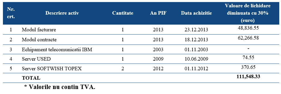 16.09.2024: V.F. INSOLVENŢĂ SPRL, in calitate de lichidator judiciar al societatii debitoare NECC TELECOM ROMANIA S.A. – „in faliment, in bankruptcy, en faillite”, organizeaza licitație publica cu strigare in data de 24.09.2024, ora 11.00 pentru valorificarea in bloc a activelor imobilizate (mijloace fixe) apartinand societatii debitoare, situate la sediul Centrului de afaceri Lumina Verde din Municipiul Ploiesti, Str. Elipsei, Nr. 1, judetul Prahova, descrise in anexa la prezenta. Licitatia se va desfasura în sistem electronic, prin intermediul platformei UNPIR de licitații online care poate fi accesată la adresa: https://www.licitatii-unpir.ro/office/it/mijloace-fixe-module-si-servere/, pretul de pornire fiind de 111.548,33 Euro la care se adauga TVA conform prevederilor legale incidente la data transferului dreptului de proprietate. In situatia in care activele nu se valorifica la prima licitatie publica cu strigare, se vor organiza in continuare alte 3 (trei) sedinte de licitatii publice, in aceleasi conditii de pret si la aceeasi ora, avand ca pret de pornire valoarea de lichidare stabilita prin raportul de evaluare, diminuata cu 30%, in urmatoarele date: 01.10.2024, 08.10.2024 si 15.10.2024. Informatii suplimentare privind descrierea activului, conditiile de participare si organizarea licitatiilor puteti solicita prin intermediul platformei.