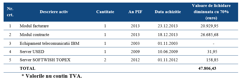 06.08.2025: V.F. INSOLVENŢĂ SPRL, in calitate de lichidator judiciar al societatii debitoare NECC TELECOM ROMANIA S.A. – „in faliment, in bankruptcy, en faillite”, organizeaza licitație publica cu strigare in data de 13.08.2025, ora 11.00 pentru valorificarea in bloc a activelor imobilizate (mijloace fixe) apartinand societatii debitoare, situate la sediul Centrului de afaceri Lumina Verde din Municipiul Ploiesti, Str. Elipsei, Nr. 1, judetul Prahova, descrise in anexa la prezenta. Licitatia se va desfasura în sistem electronic, prin intermediul platformei UNPIR de licitații online care poate fi accesată la adresa: https://www.licitatii-unpir.ro/office/it/mijloace-fixe-module-si-servere/, pretul de pornire fiind de 47.806,43 Euro la care se adauga TVA conform prevederilor legale incidente la data transferului dreptului de proprietate. In situatia in care activele nu se valorifica la prima licitatie publica cu strigare, se vor organiza in continuare alte 3 (trei) sedinte de licitatii publice, in aceleasi conditii de pret si la aceeasi ora, avand ca pret de pornire valoarea de lichidare stabilita prin raportul de evaluare, diminuata cu 70%, in urmatoarele date: 20.08.2025, 27.08.2025 si 03.09.2025. Informatii suplimentare privind descrierea activului, conditiile de participare si organizarea licitatiilor puteti solicita prin intermediul platformei.