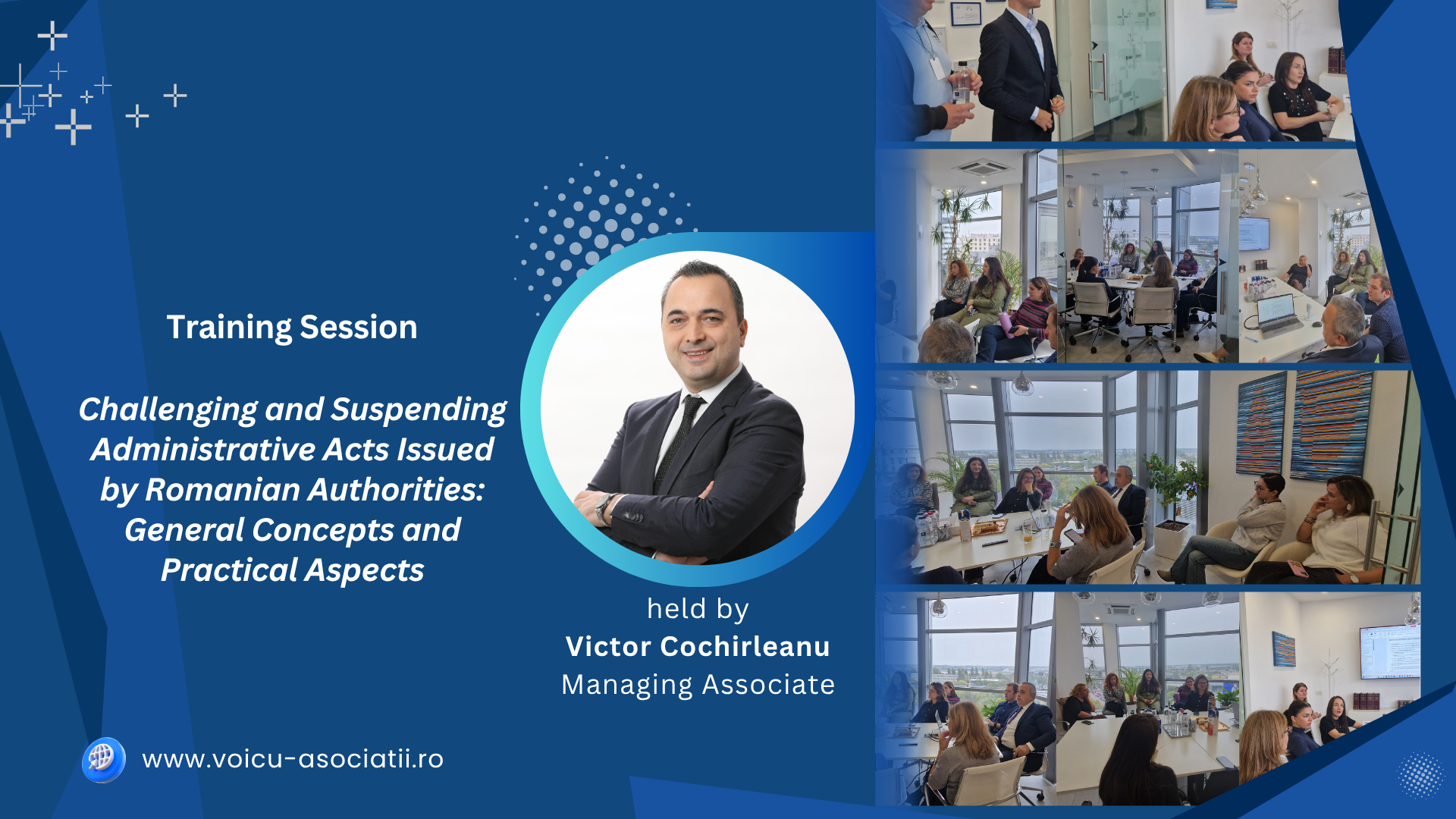 The session was conducted by Victor Cochirleanu, Managing Associate, who shared insights drawn from his consistent and well-established background in administrative law. His approach combined legal theory with practical litigation experience, delivered through a dynamic format that encouraged thoughtful dialogue among attendees and fostered a constructive exchange of perspectives.